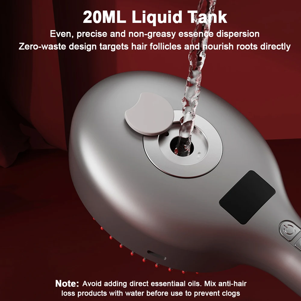 1. The electric spray massage comb offers four modes—red light+vibration+spray mode, red light+spray mode, red light only, and vibration only—ensuring every strand of hair is cared for.